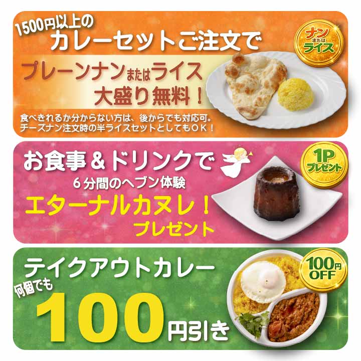 ① 🍛 1500円以上のカレーセットご注文で
